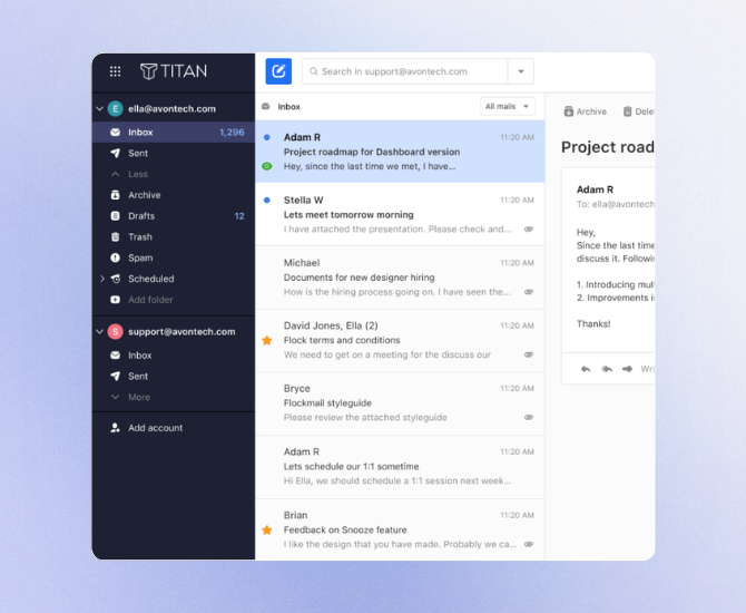Yes. Titan includes built-in migration tools that make it easy to transfer your existing email data to your Titan account. If you encounter any issues during the migration, our dedicated support team is available 24/7 to assist you.